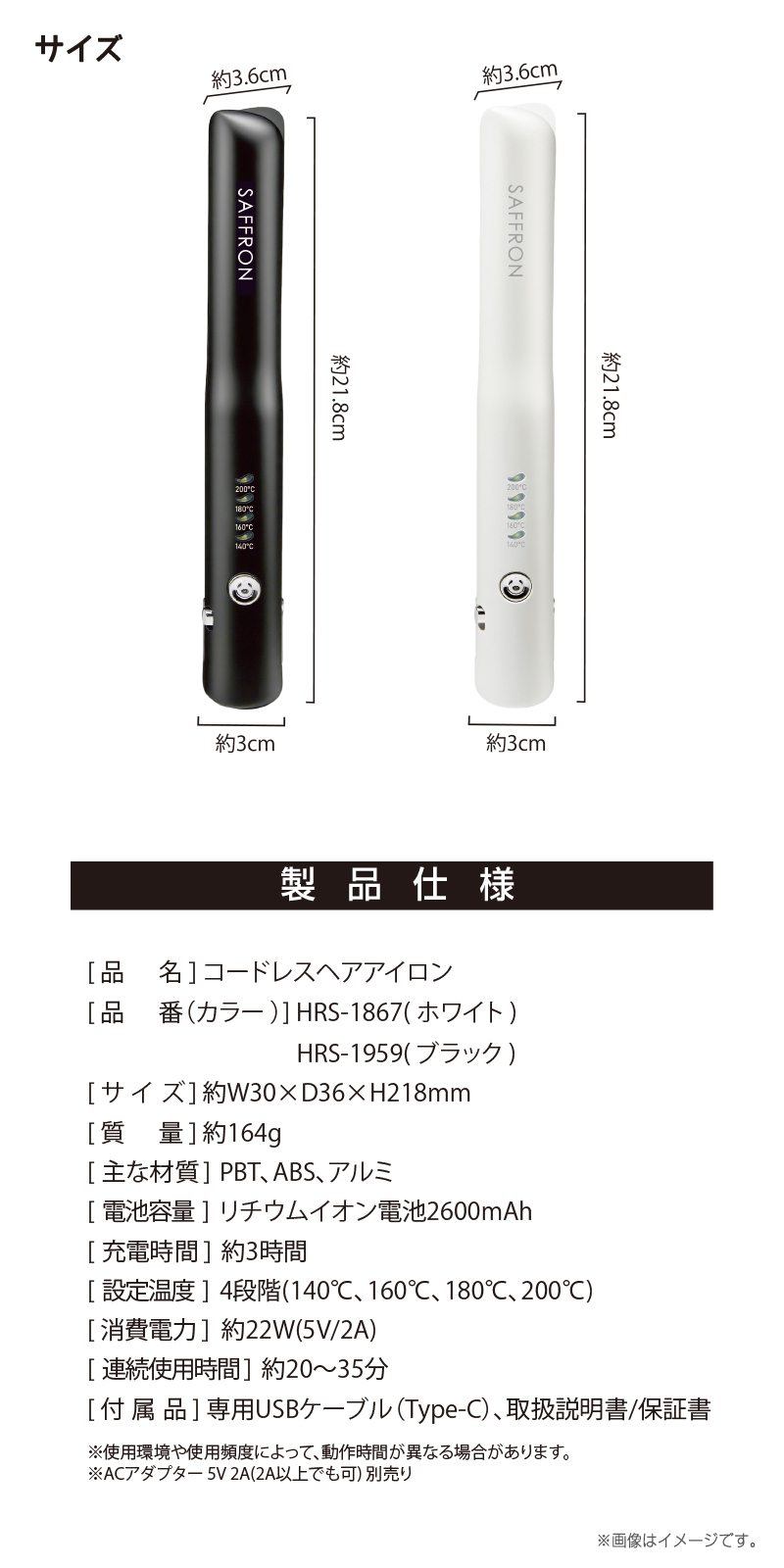 連続使用時間:約20〜30分